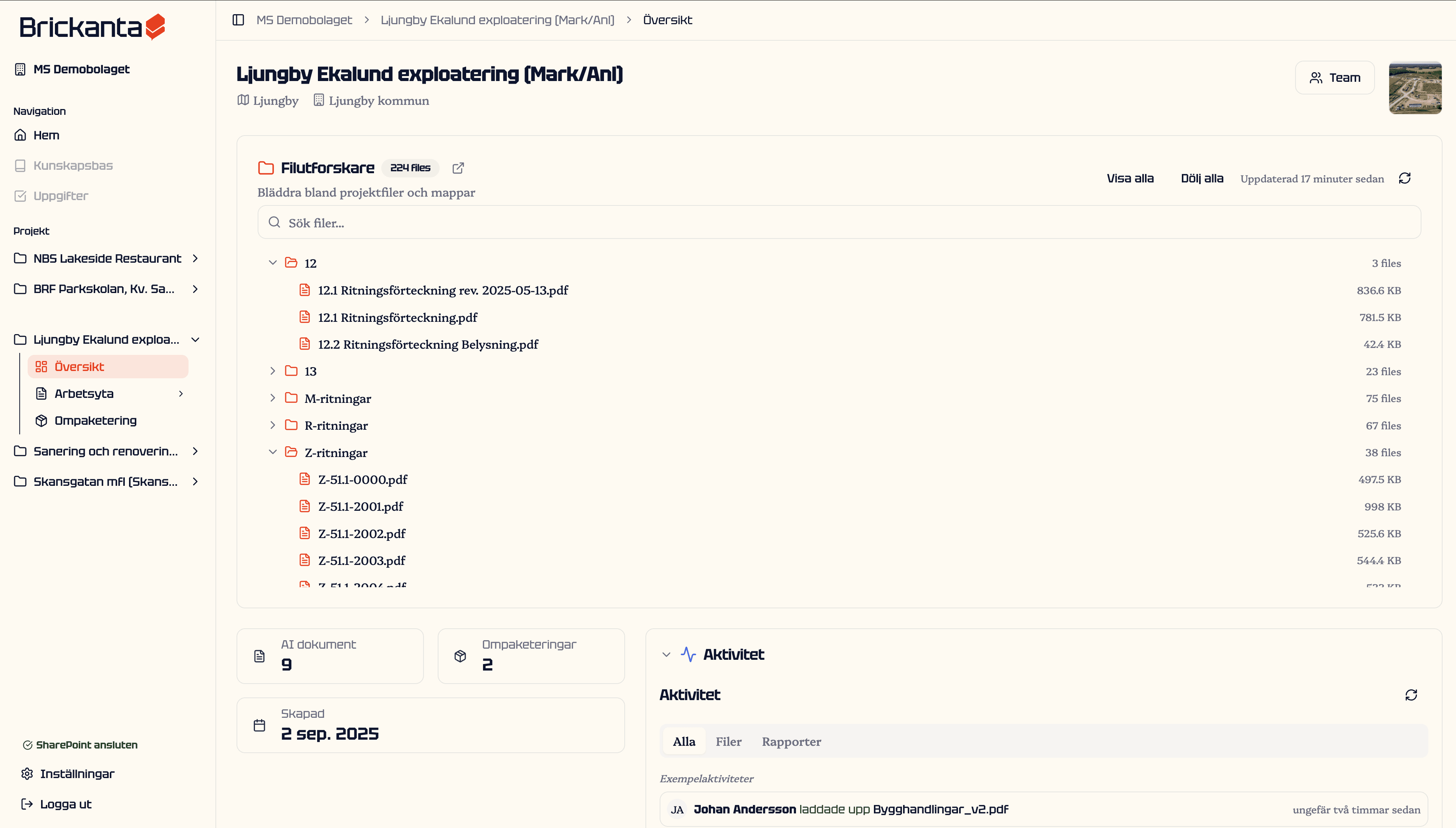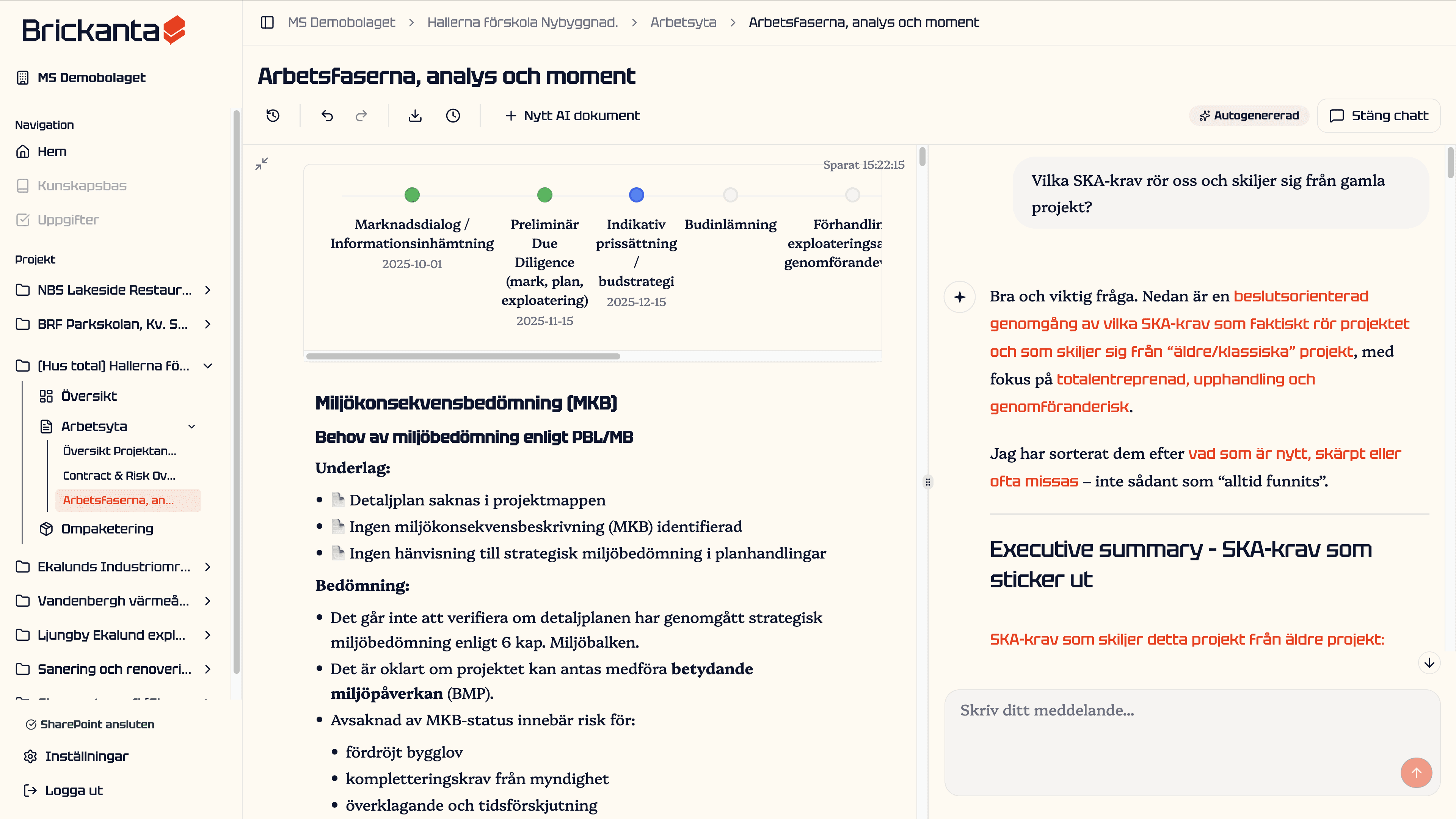Brickanta samlar beslut, sammanhang och insikter från anbudsskede till produktion och gör dem direkt tillgängliga, med löpande analys genom hela projektet.